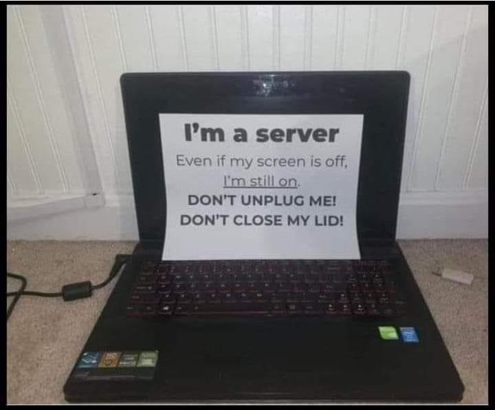 A laptop with the lid closed will sleep by default, and a sleeping server serves nothing. Two fixes: