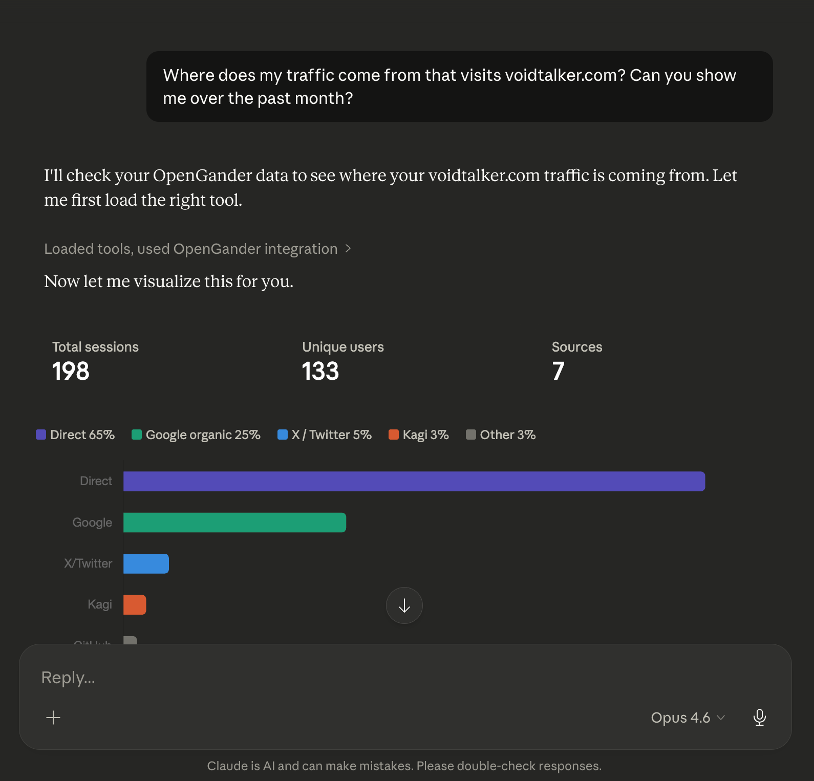 For the tech crowd, you can run this setup without me or OpenGander. If you can host and run OpenTelemetry and ClickHouse then go for it. My hope is for others to embrace reciprocity in the act of visiting a website. Better marketing analytics. Better web history. Data sovereignty will take more efforts than this, but it's a start.
